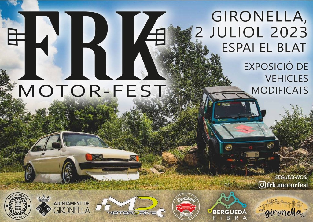 📢EL PROPER DIUMENGE 2 DE JULIOL ES CELEBRARÀ PER PRIMERA VEGADA l’ 🔩 FRK MOTOR-FEST🔩, AL LOCAL DEL BLAT, I EL SEU RESPECTIU PARKING, AMB HORARI DE 11:00H A 17:00H, El primer festival del motor de la comarca, on la principal atracció serà una exposició de vehicles modificats, de diferents estils: Stance, Rally, Clàssics, Kaidoracers, 4×4, Drag Race, etc.